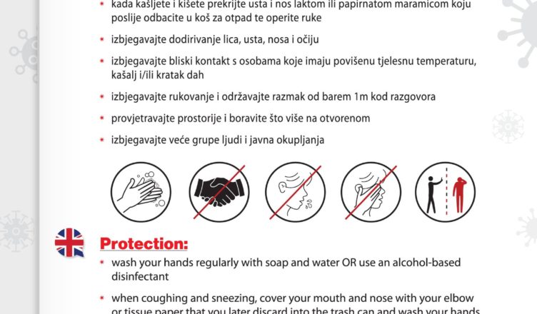 Napomena: Preporuke se mogu promijeniti u skladu s epidemiološkom situacijom! Ažurirani podaci vezano uz koronavirus, kao i mjere zaštite zdravlja pučanstva svakodnevno se objavljuju na internetskim stranicama Ministarstva zdravstva i HZJZ-a.